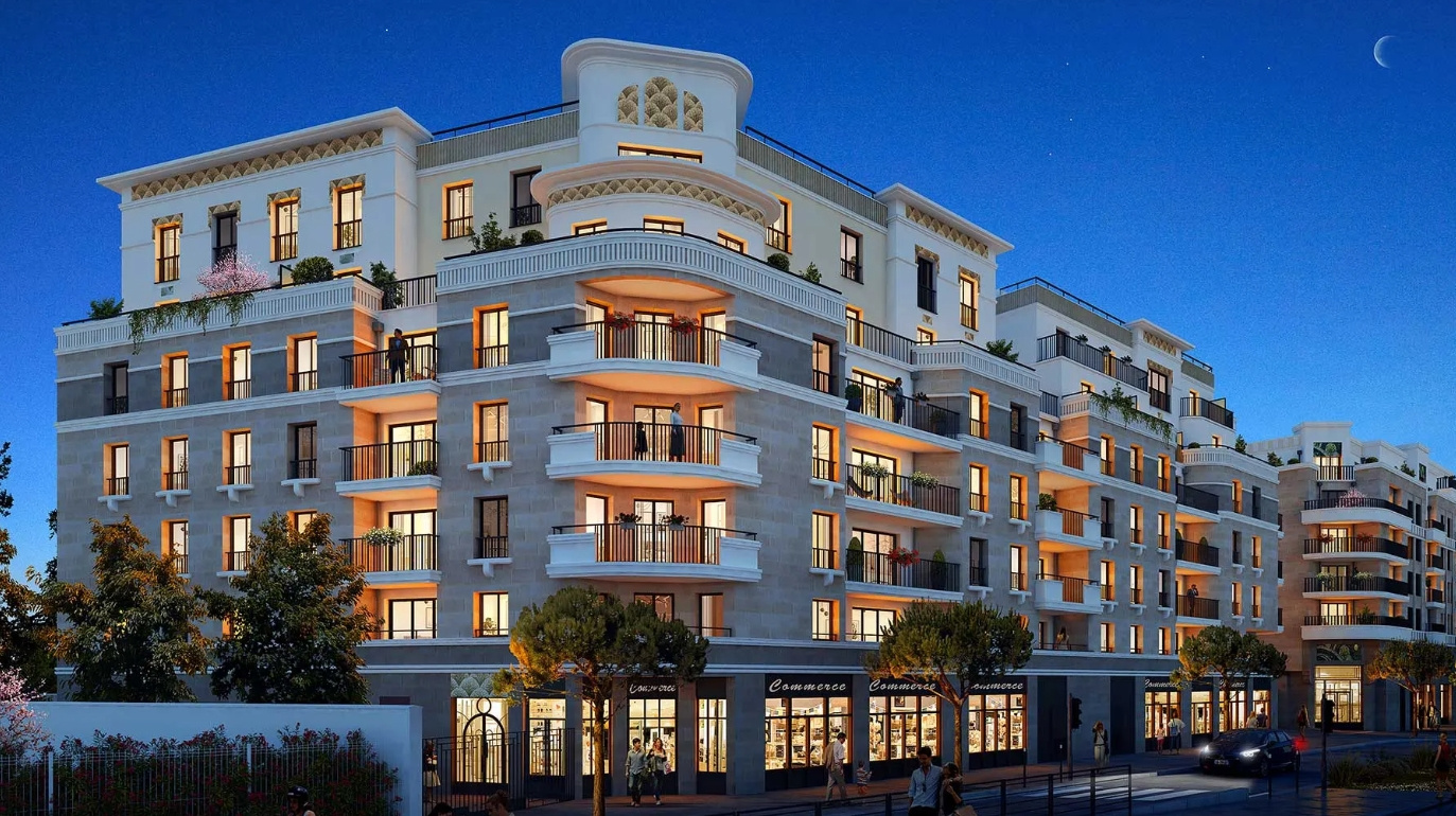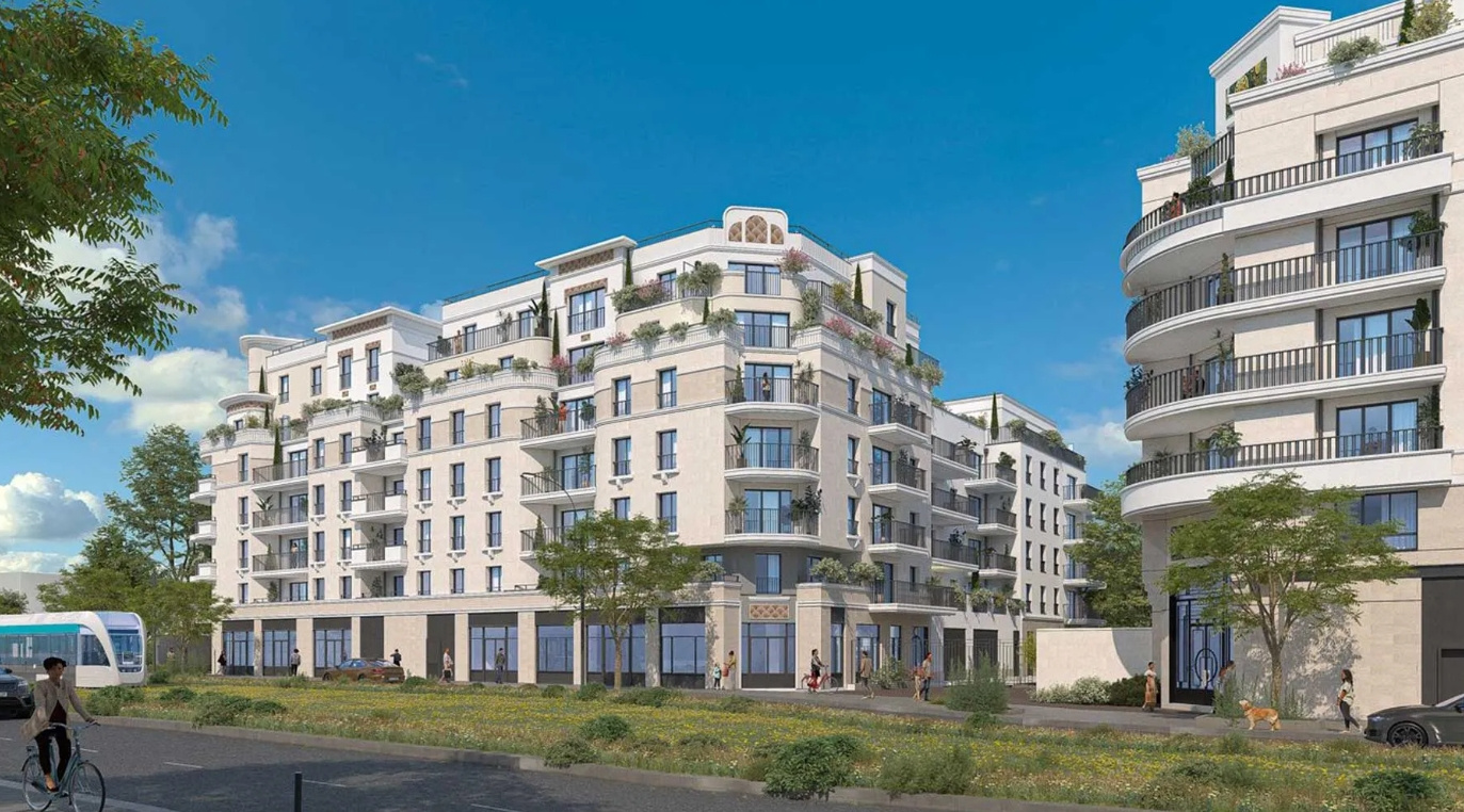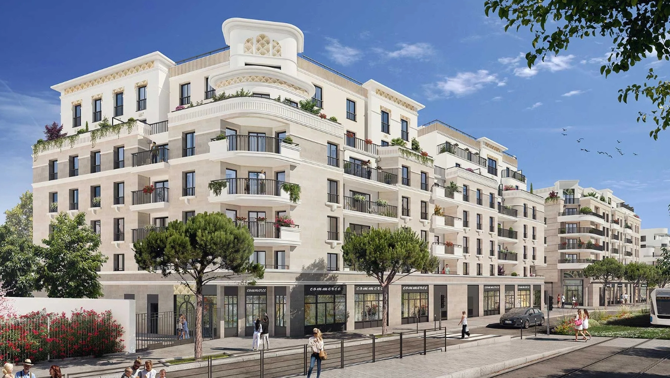 Inspirée de l’architecture des années 30, la résidence séduit par son élégance et son intégration harmonieuse dans le paysage urbain. Elle se distingue par ses façades en pierre naturelle, ses attiques avec terrasses, et ses généreux espaces verts. Les tons blanc et brun des enduits renforcent son caractère raffiné. Un cœur d’îlot paysager, des commerces en pied d’immeuble et des accès facilités pour piétons et véhicules renforcent le confort au quotidien. L’ensemble est certifié RE 2020 et NF Habitat HQE, gage de qualité et de performance environnementale.