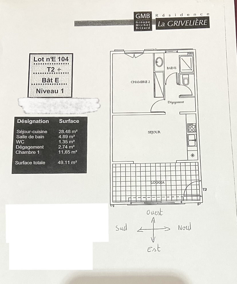 Situé au 1er étage d’une résidence calme et sécurisée, cet appartement de type T2 d'une surface de 49.11m2 offre un bel espace de vie de 28,48 m² avec séjour et cuisine ouverte, donnant sur une agréable loggia.